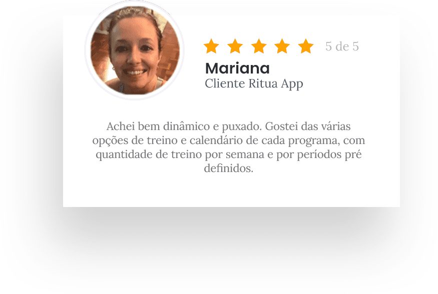 Seja iniciante, intermediária ou avançada, o Ritua se adapta a sua rotina e às suas exigências. Um aplicativo completamente personalizado que te permite acompanhar o seu progresso e alcançar seus objetivos de maneira eficaz.